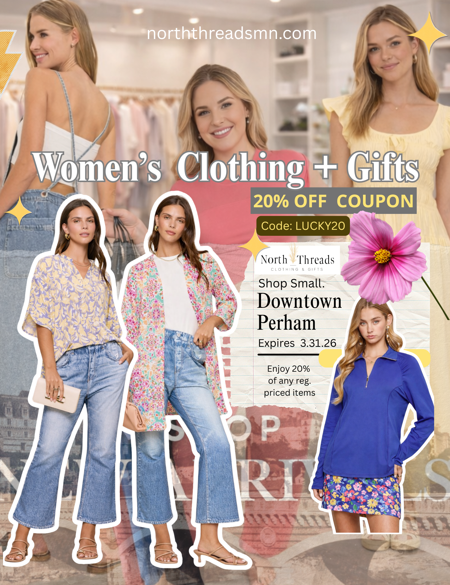 North Threads was created in 2021 by Lexy Ziemann, who began her retail journey managing 125 Apparel back in 2018. After years of growth and experience, she bought the business and rebranded to North Threads in her hometown of Perham, Minnesota. Lexy loves styling women of all ages, from her Gen Z nieces to her 73-year-old mom—and, of course, her millennial self. Her philosophy? There are no rules in fashion—just wear what makes you feel good.