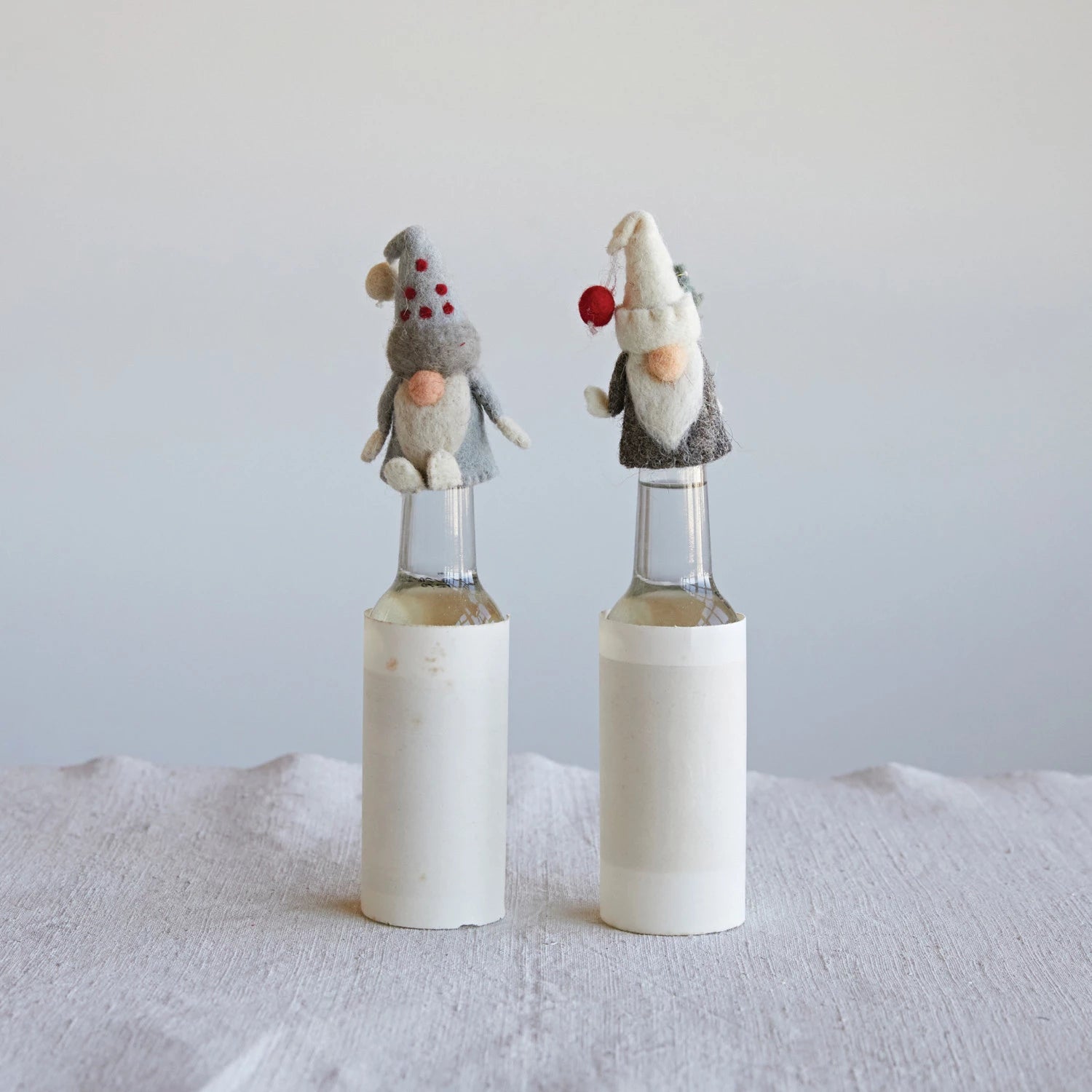 4"H Handmade Wool Felt Gnome Bottle Topper, Multi Color, 2 Styles