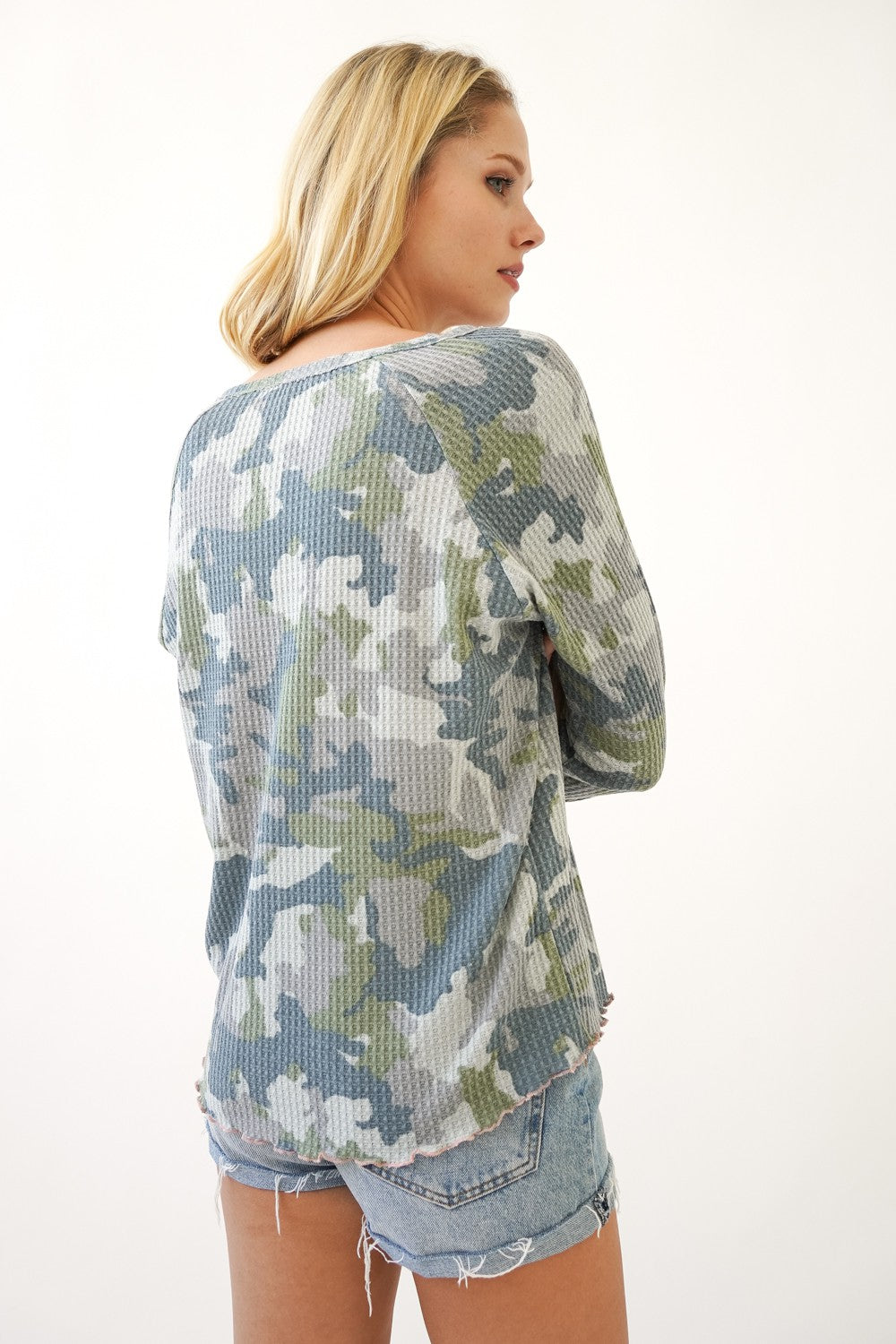 DOORBUSTER: Camo Lettuce Hem Top