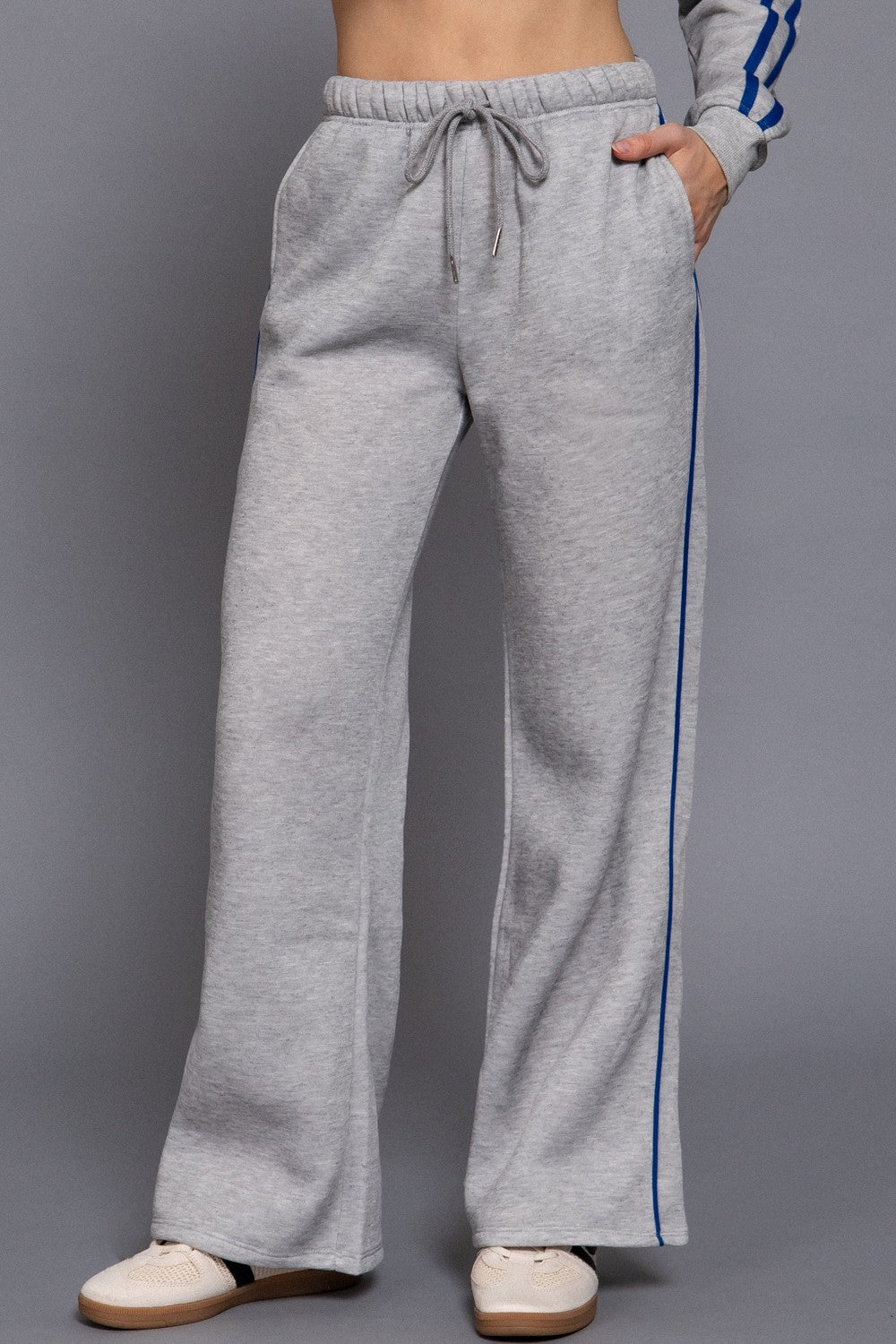 Get cozy and stylish with the Colby Line Detail Sweatpants! Featuring a playful contrast line detail, these sweatpants come with a drawstring waist for the perfect fit and handy pockets to keep your essentials close. Perfect for lounging or casual outings, they bring comfort and fun together effortlessly.