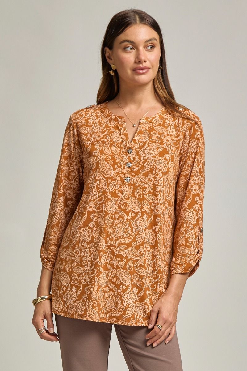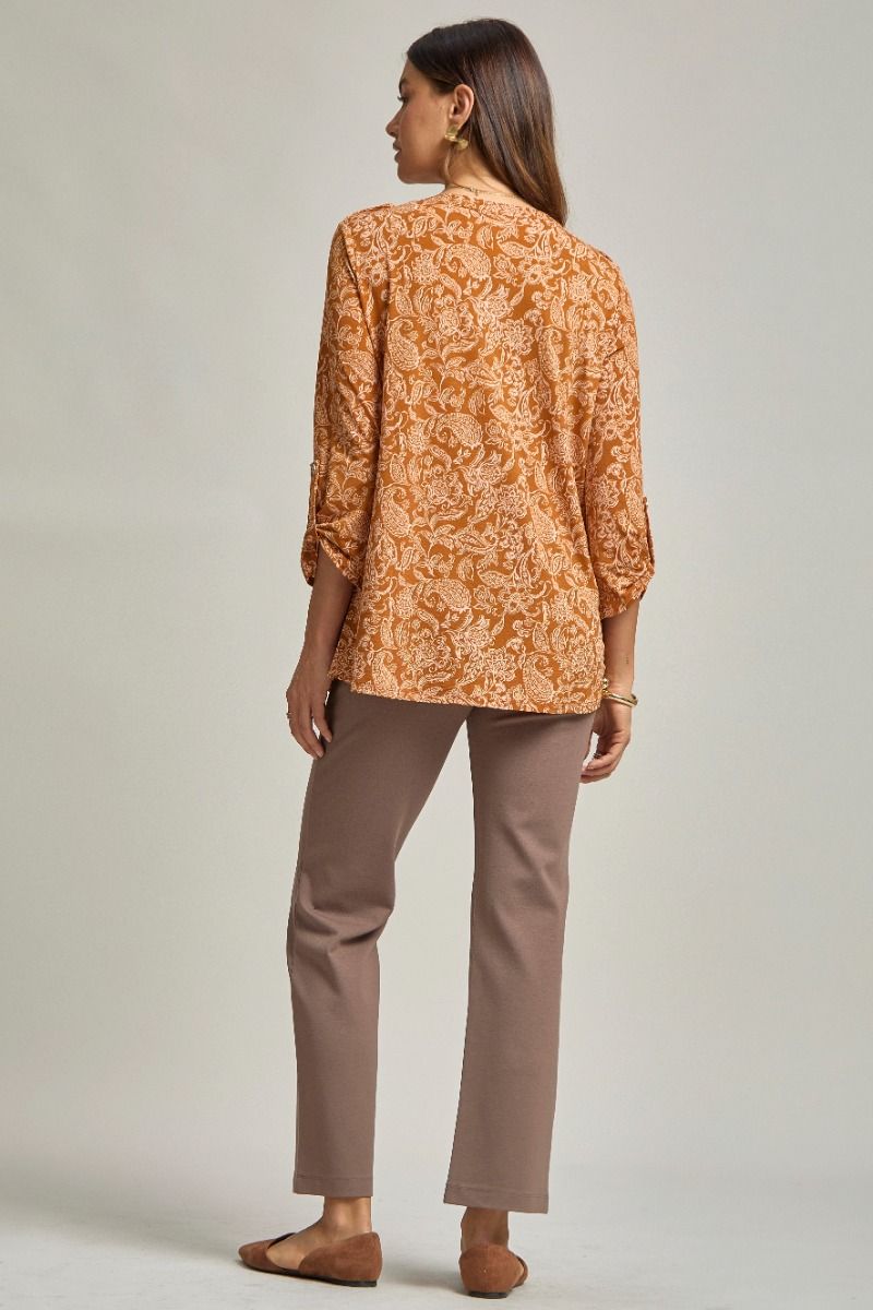 The Dear Scarlett Lizzy Luxe Paisley Print Blouse features stylish faux pockets and a flattering neckline for a laid-back vibe. Its relaxed fit makes it super comfortable, while the wrinkle-free fabric keeps you looking fresh on the go. Perfect for travel or casual days when you want effortless style.