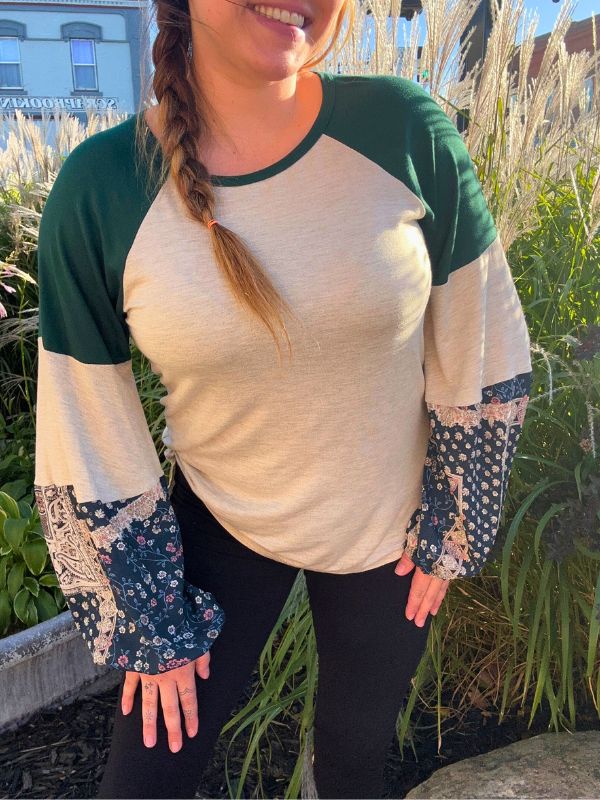 Experience effortless style and comfort with this jersey raglan color-blocked long sleeve top. Crafted from a soft blend of 90% viscose, 6% polyester, and 4% spandex, it offers a breathable stretch fit that moves with you. The unique balloon sleeves add volume and flair, while side slits provide ease and a flattering silhouette. Perfect for layering or wearing alone, this versatile top combines casual comfort with standout design to elevate your everyday wardrobe.