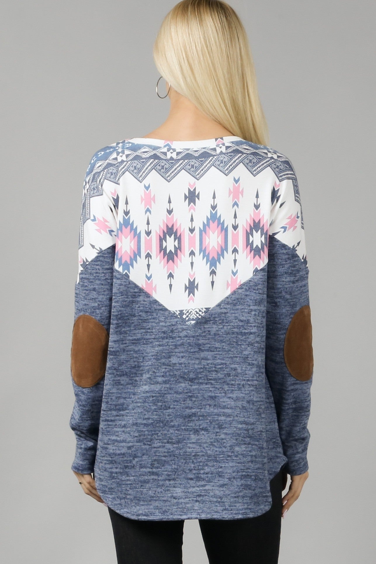 Bring a burst of fun to your outfit with the Mojave Moment Aztec Color Block Top. Its vibrant Aztec patterns and soft suede elbow patches add a quirky twist to your everyday style. Lightweight and comfy, it’s perfect for mixing and matching with your favorite pieces. Get ready to turn heads and feel fabulous!