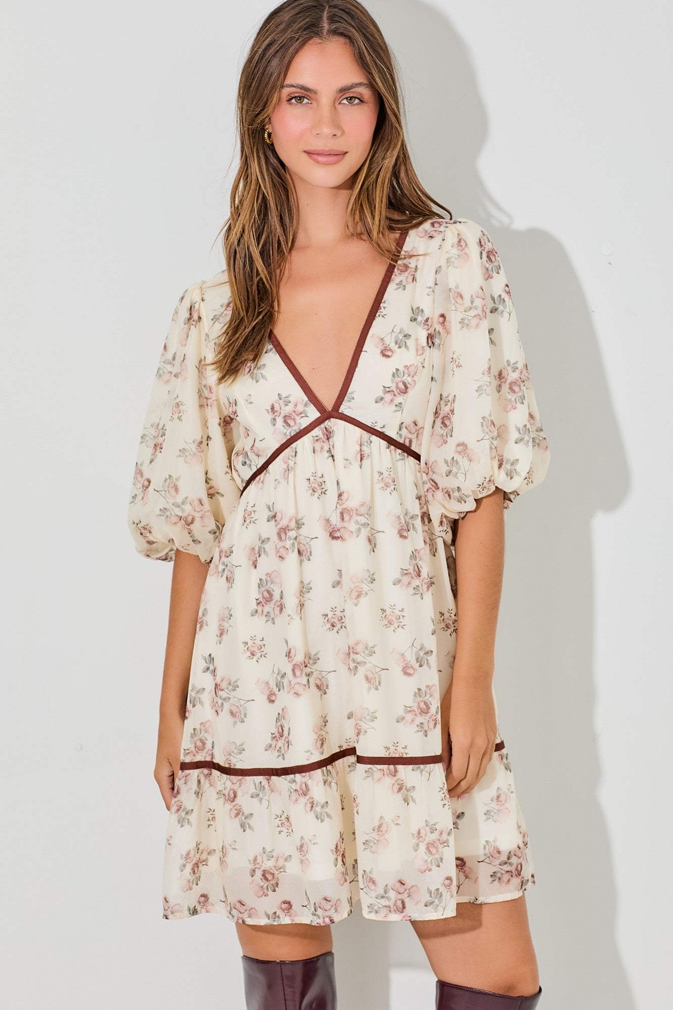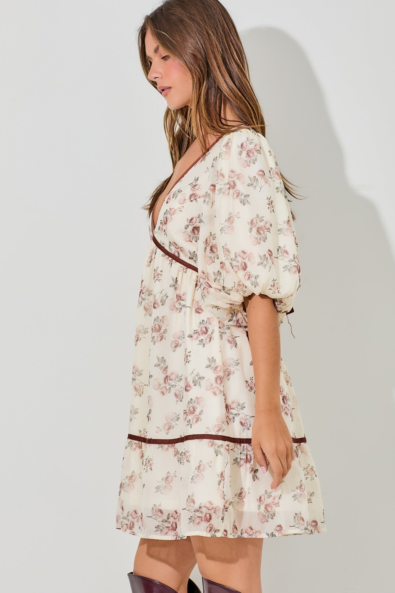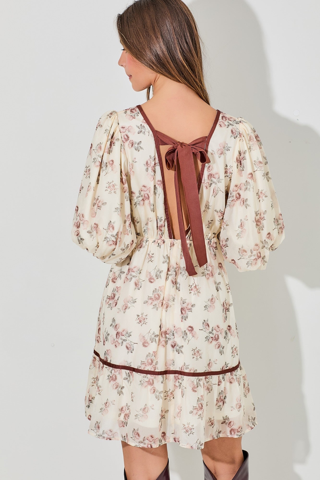 This mini dress features a vibrant floral print that brings fresh, easy vibes to your wardrobe. The self-tie bow on the back adds a playful touch, letting you adjust the fit to your comfort. Perfect for those laid-back days when you want to feel stylish without trying too hard.