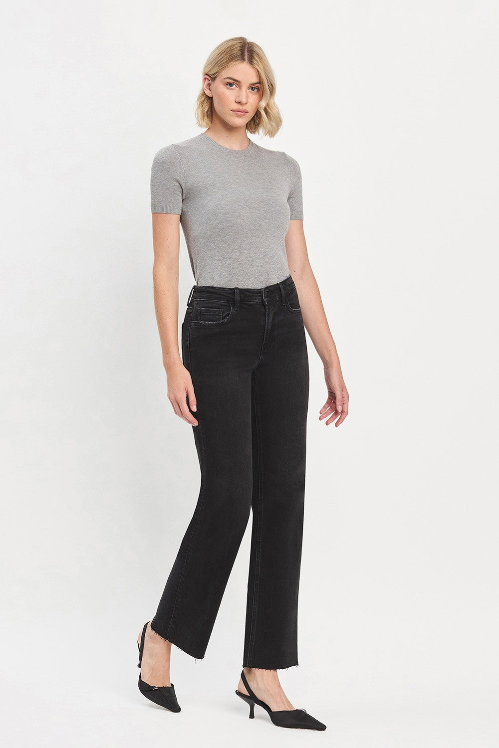 Introducing your new go-to pants: Flying Monkey High Rise Slim Wide Jeans. Made with comfortable stretch denim, these full-length jeans feature a high-rise waist and a slim wide fit. Plus, the raw hem adds a touch of edge to your look. Elevate your denim game with these versatile and stylish jeans!