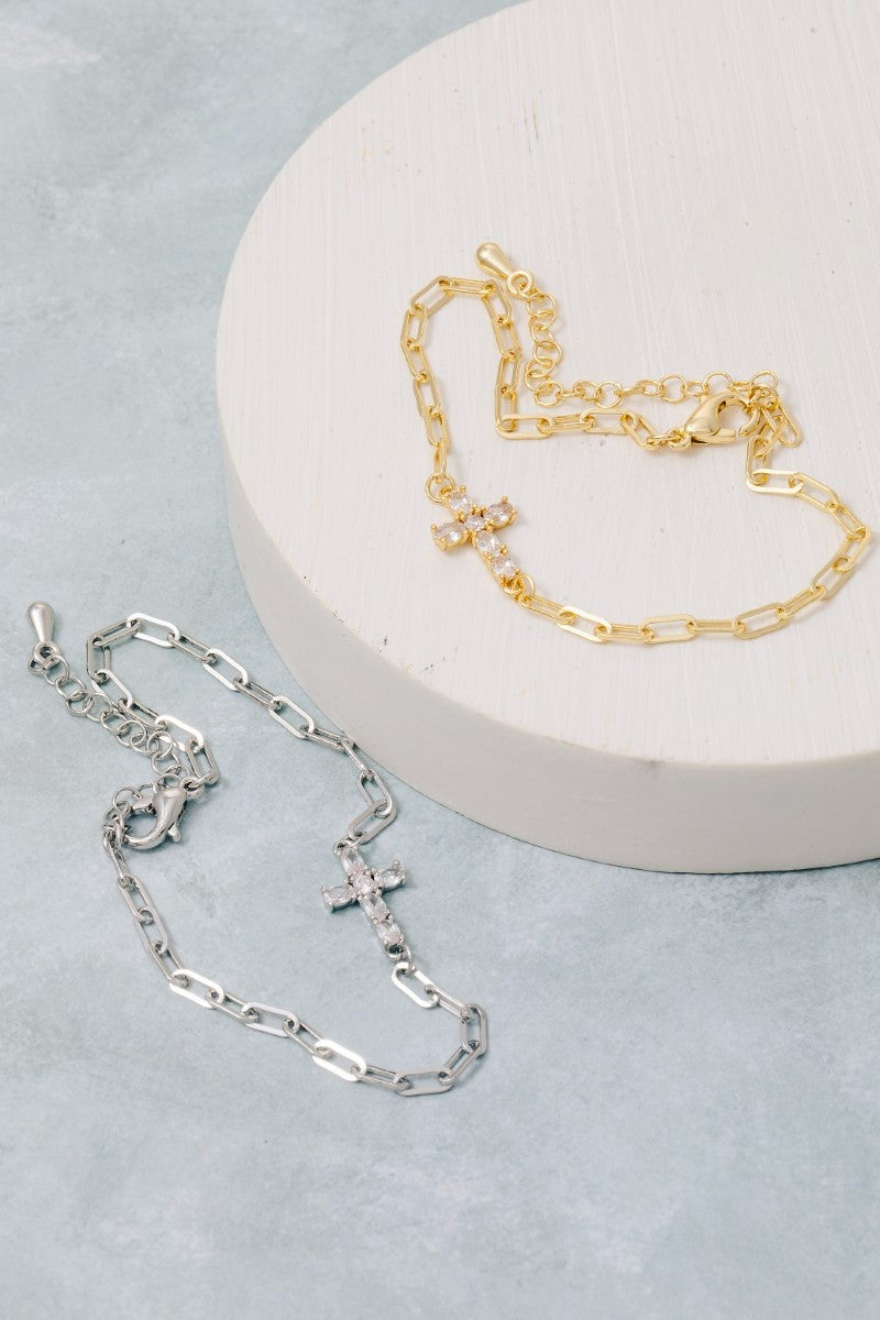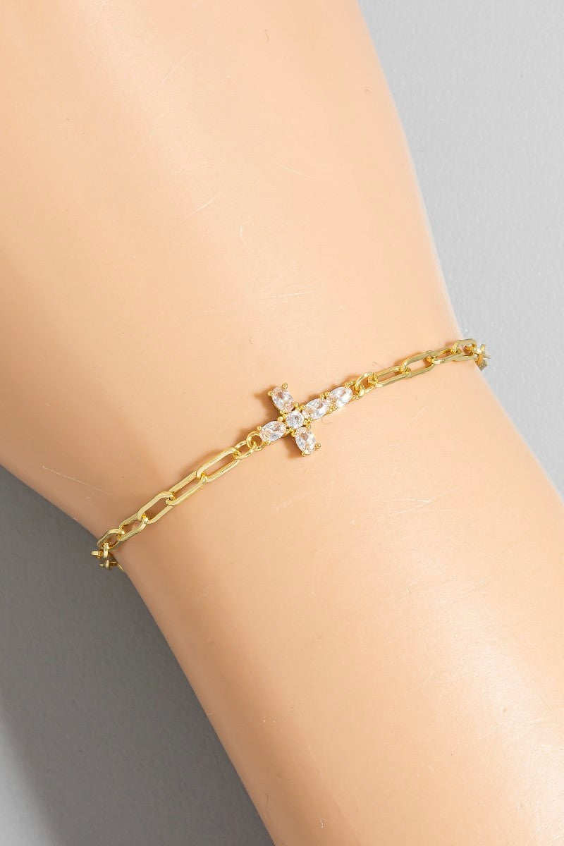 Gold Dipped Cz Cross Dainty Chain Bracelet