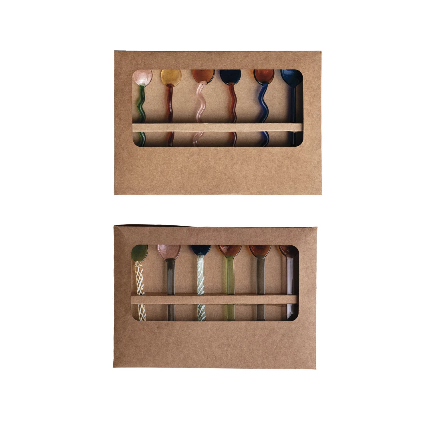 Handmade Glass Spoons in Kraft Box, Set of 6, 2 Styles