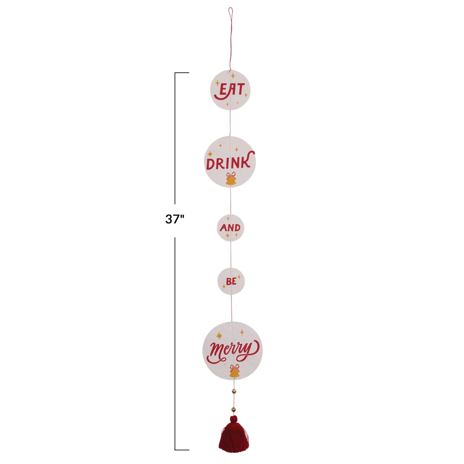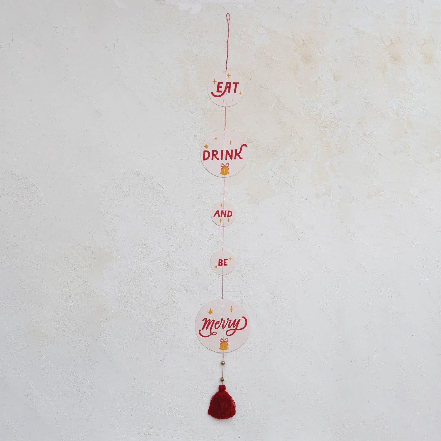 This playfully festive recycled paper banner features handcrafted "Eat, Drink, and Be Merry" messages strung together with a beaded tassel. Add a touch of festive whimsy to any space with our enchanting collection of garlands, including stunning glass, sleek metal, and delightful mixed-material options, all expertly crafted to create a merry and bright atmosphere.