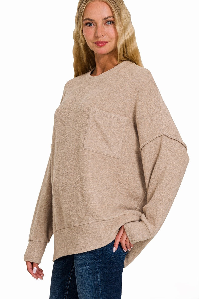 Cozy up in the Jump In Oversized Drop Shoulder Sweater, crafted from soft brushed melange fabric for all-day comfort. Stylish seam accents and a playful hi-low hem add fun details, while the flat chest pocket keeps it cool and casual. Available in 4 vibrant colors to brighten your wardrobe!
