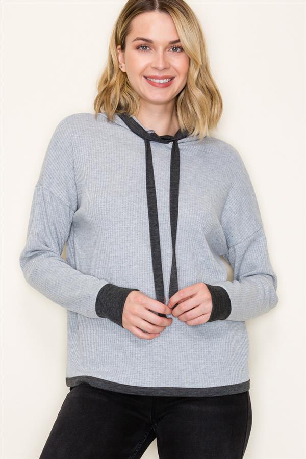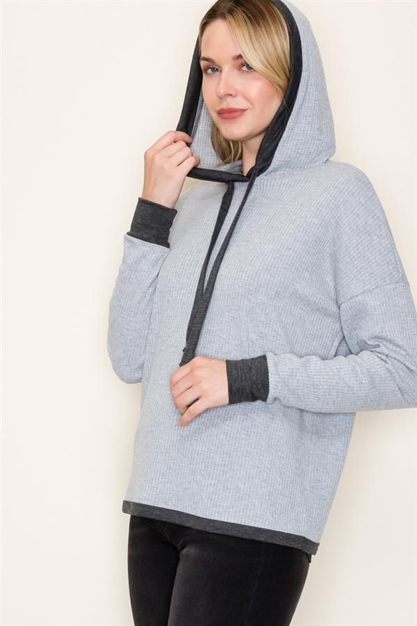 Cozy up in the Lazy Day Waffle Knit Hoodie, featuring a fun color-trimmed drawstring neck and long sleeves perfect for lounging or casual adventures. Its soft waffle texture adds warmth and a touch of style, making it your go-to pullover for those laid-back days when comfort is key.