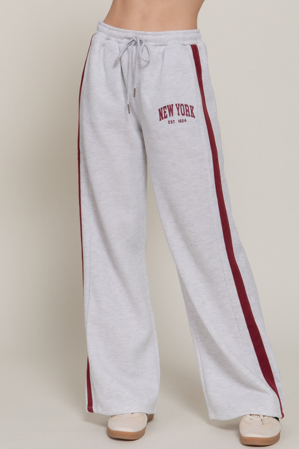 These sweatpants bring a fun twist with a contrast print along the waistband and sides. The emblem patch proudly shows "NEW YORK EST: 1624," adding a cool city vibe. Perfect for lounging or casual adventures with a playful edge!