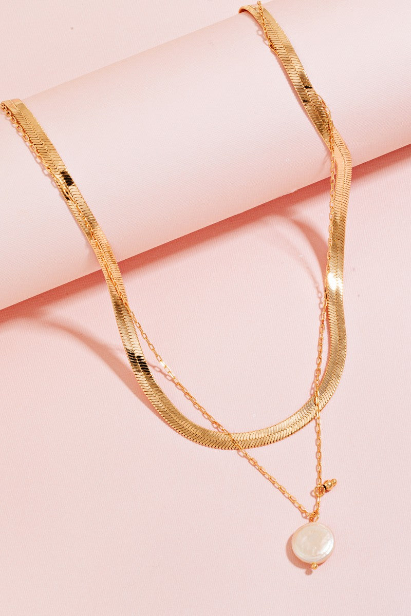 This layered necklace features a stunning pearl disc pendant, adding a touch of elegance to any outfit. With its water-resistant design, this necklace is perfect for everyday wear. Complete your look with the matching pearl ball stud earrings for a perfectly coordinated style.