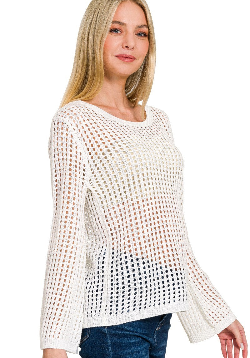 Sail Away Hollow Out Long Sleeve Top-3 Colors!