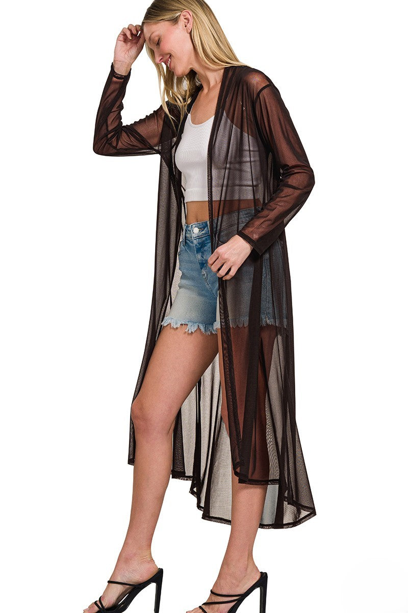 Light and breezy, the Sheer Grace Open Front Cardigan adds a playful layer to any outfit. Its mesh fabric keeps you cool while offering just the right amount of coverage. Perfect for sunny days or cool evenings, this cardigan effortlessly blends comfort with style.