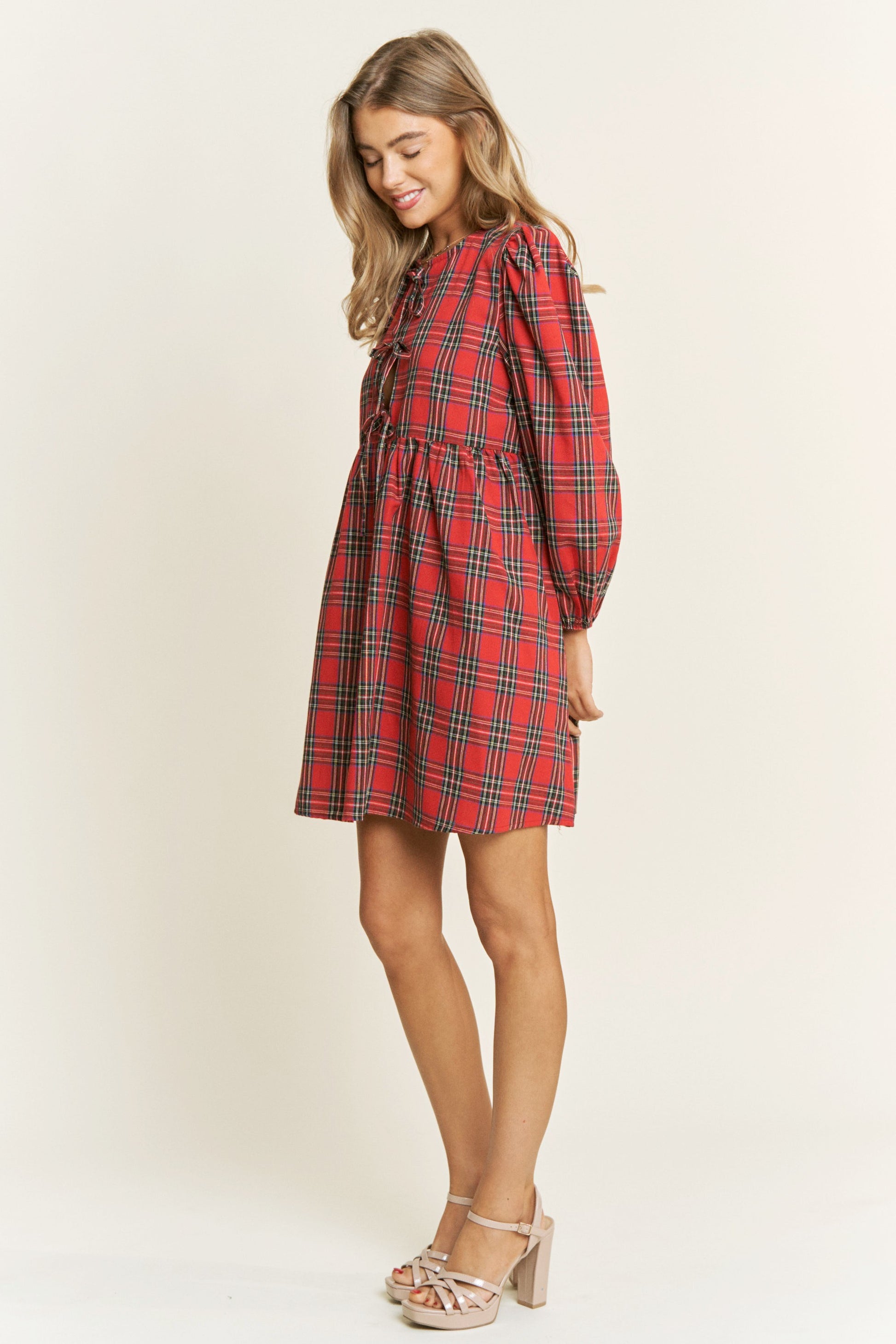 Soft Plaid Woven Babydoll Bow Mini Dress