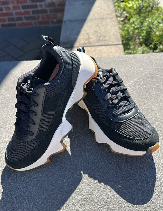 The SOREL Kinetic Impact II Wonder Sneaker blends sport-inspired style with laid-back vibes, featuring a breathable mesh upper with suede and leather overlays for a secure, comfy fit. Lightweight LIVELYFOAM cushioning made with eco-friendly algae bloom keeps your feet feeling fresh all day, while the molded EVA and TPU support provide steady arch and heel stability. Whether you're dressing it up or down, the bold printed outsole and thoughtful details make every step effortlessly cool.